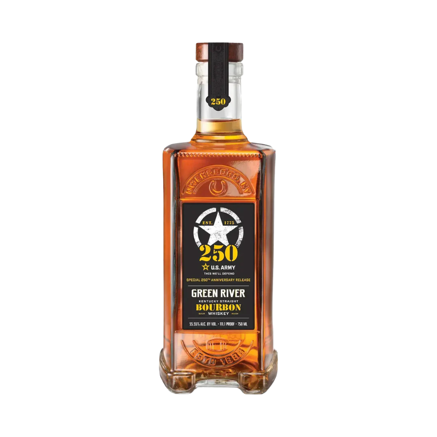 Celebrate the U.S. Army's birthday with Green River Army Bourbon. Bottled at a robust 111.1 proof, this full-bodied Kentucky bourbon boasts flavors of caramel, black cherry, cocoa, and peppermint. Its rich mouthfeel of toffee and toasted oak finishes with a bold, spicy kick. Toast to our soldiers with this official, distinct whiskey.